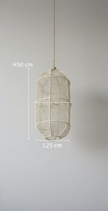 Elke lamp vertelt een eigen verhaal. De basis wordt met de hand gesmeed door een traditionele ijzersmid, waarna de lamp wordt afgewerkt met zorgvuldig geselecteerde raffia. Dit natuurlijke materiaal geeft elke lamp een warme, sfeervolle uitstraling en zorgt voor een prachtige lichtval in iedere ruimte. Geen enkele lamp is hetzelfde: kleine verschillen in vorm, kleur en structuur maken elk exemplaar uniek.